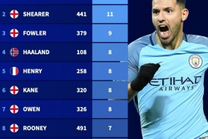 體育資訊11月10日訊 德轉(zhuǎn)盤點(diǎn)了英超歷史上上演帽子戲法次數(shù)榜,其中阿圭羅12次居首,哈蘭德8次第四,具體如下: