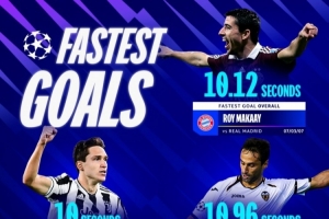 體育資訊7月9日訊 天下武功,唯快不破。歐冠官方統(tǒng)計了五大進球最快紀錄,其中歐冠賽事中歷史最快進球紀錄是馬凱保持的10.12秒,歐冠決賽最快進球紀錄是馬爾蒂尼在伊斯坦布爾之夜的53秒。