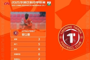 中甲聯(lián)賽第30輪比賽中,遼寧鐵人主場(chǎng)對(duì)陣佛山南獅。上半場(chǎng)第40分鐘,安以恩小角度墊射得分打破僵局。下半場(chǎng)第69分鐘,安以恩推射建功。第76分鐘,安以恩帶球突入禁區(qū)晃過門將后推射破門,幫助球隊(duì)鎖定勝局。第81分鐘,安以恩挑傳助攻隊(duì)友再下一城。最終,安以恩上演帽子戲法且錄得1次助攻,幫助遼寧鐵人農(nóng)商銀行5-0大勝對(duì)手。