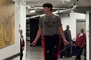 相關(guān)新聞>>>今天有機(jī)會(huì)嗎?楊瀚森賽前熱身秀各種扣籃 三分球也信手拈來(lái)