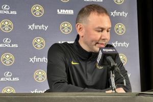 賽后,小吧在新聞發(fā)布會現(xiàn)場,掘金主教練小阿德爾曼接受采訪,談到了第四節(jié)大比分領(lǐng)先還讓約基奇上場一事。