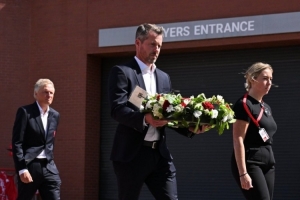 體育資訊7月9日訊 今日,利物浦俱樂部首席執(zhí)行官比利-霍根攜高管團隊成員在安菲爾德球場向若塔兄弟致以深切敬意,并獻上鮮花表達哀悼之情。