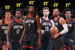 當(dāng)你的球隊(duì)擁有申京和杜蘭特這樣的球員時(shí),這可能很難想象。然而,由于陣容的構(gòu)建方式,火箭隊(duì)在場(chǎng)上擁有許多長(zhǎng)臂球員,能夠整場(chǎng)比賽給對(duì)方進(jìn)攻球員帶來(lái)困擾。超過(guò)一半的球員臂展達(dá)到7英尺(2米13)。