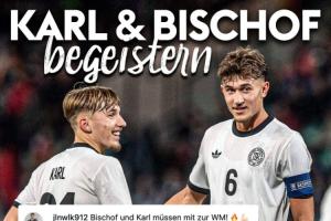 此役,來自拜仁的雙子星卡爾和比朔夫貢獻了極佳的表現(xiàn):17歲的卡爾首次入選德國U21,本場比賽貢獻2球。20歲的比朔夫更是擔任德國隊的場上隊長,貢獻3球1助。在數(shù)據(jù)機構Sofascore的賽后評分中,二人均得到了10分滿分。
