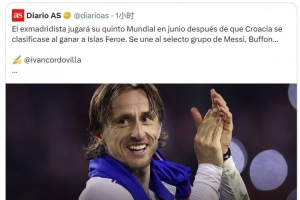 40歲克羅地亞中場莫德里奇將迎來自己的第5屆世界杯,西班牙媒體《阿斯報》主編、皇馬球迷龍賽羅轉(zhuǎn)發(fā)相關(guān)新聞,配文:“永恒的莫德里奇,偉大的盧卡(莫德里奇)!”