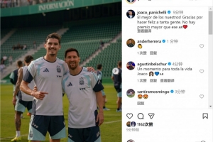 帕尼切利社媒曬出與梅西的合照,配文:“我們之中最棒的!感謝你給無數(shù)人帶來快樂,(對我來說)再也沒有比這更好的獎賞了!”