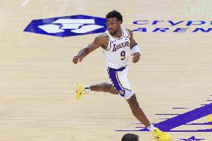 湖人這邊八村塁(小腿)、斯瑪特(生?。┤标嚕祭誓嵋虼双@得首發(fā)機會。