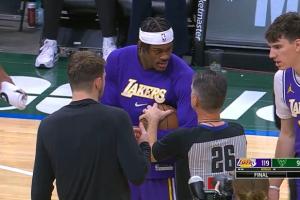 體育資訊11月16日訊 在今日湖人戰(zhàn)勝雄鹿的賽后,雙方球員以及裁判針對比賽用球展開了一段拉扯。