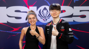 體育資訊7月10日訊?法語(yǔ)流發(fā)布T1入場(chǎng)視頻,并配文:有幸與Laure(英文流&法語(yǔ)流主持人)并肩的Faker。