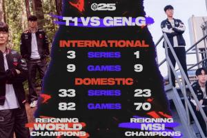 T1 vs GEN國際賽事:大場3-1、小場9-9。