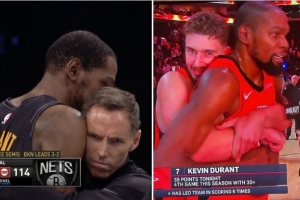 杜蘭特接受采訪遭申京熊抱!申京:瑪?shù)路?我們就是這樣贏球的
