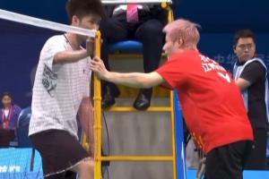 體育資訊11月17日訊 全運(yùn)會(huì)羽毛球男單1/4決賽,石宇奇在第二局6-3領(lǐng)先時(shí)因傷退賽,翁泓陽(yáng)晉級(jí)4強(qiáng)。