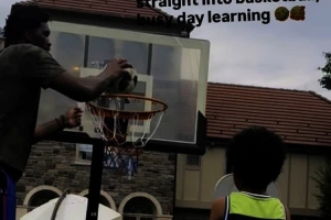 配文寫道:“從足球訓(xùn)練迅速切換到了籃球,忙碌的學(xué)習(xí)日?!?/p>