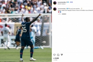 體育資訊7月10日訊 巴黎在世俱杯半決賽4-0血洗皇馬,邊后衛(wèi)努諾-門德斯也在賽后通過社媒紀(jì)念。