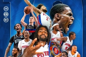 賽后,活塞發(fā)布10連勝海報,斯圖爾特位居C位,和康寧漢姆、杜倫一起占據(jù)的版面的中央。
