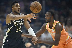 本場(chǎng)比賽,字母因傷提前離場(chǎng)。離場(chǎng)前他出戰(zhàn)13分鐘,10中6,罰球3中2拿到14分5籃板4助攻1搶斷,出現(xiàn)4次失誤。