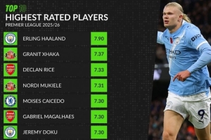 體育資訊11月19日訊 截至目前本賽季英超進(jìn)行了11輪比賽,WhoScored列球員評(píng)分榜,哈蘭德7.90居首,扎卡7.37第二。