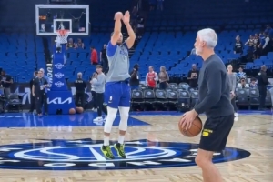 庫里入場穿著設(shè)計師Salehe Bembury鞋款 后者打造過指紋洞洞鞋