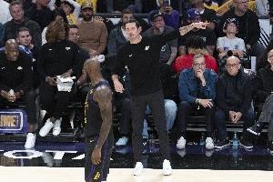 湖人周二的開(kāi)局迅速加劇了這些質(zhì)疑。詹姆斯的第一個(gè)進(jìn)球——來(lái)自一次為他設(shè)計(jì)的三分戰(zhàn)術(shù)——直到第二節(jié)湖人落后7分時(shí)才投中。