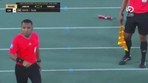 此役牙買(mǎi)加第95分鐘獲點(diǎn)球,原本有機(jī)會(huì)1-0讀秒絕殺庫(kù)拉索,直通美加墨世界杯。然而裁判看完VAR后取消點(diǎn)球,牙買(mǎi)加最終無(wú)緣直通。當(dāng)點(diǎn)球被取消時(shí),庫(kù)拉索電視臺(tái)的解說(shuō)員瘋狂慶祝,鬼哭狼嚎。
