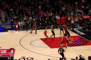 有點(diǎn)夸張!文班亞馬籃下起飛過(guò)高用手腕空接扣進(jìn)