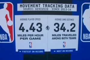 球員每場平均奔跑速度4.43英里/小時(shí)、球隊(duì)場均跑動(dòng)34.2英里