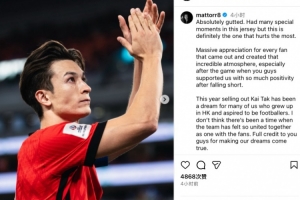 毫無(wú)疑問(wèn),現(xiàn)在非常失落。為中國(guó)香港隊(duì)出戰(zhàn)經(jīng)歷了一些特別的時(shí)刻,但此刻最讓人神傷。