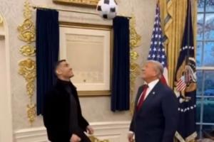 美國總統(tǒng)特朗普在社媒放出一段與C羅踢球的AI生成視頻,并配文:“C羅是個很棒的人。很高興在白宮與他見面。他既聰明又酷!?。 萍{德·特朗普總統(tǒng)”