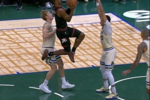 GIF-馬克西上籃撞倒羅林斯被吹進(jìn)攻犯規(guī),76人挑戰(zhàn)成功,變成2+1