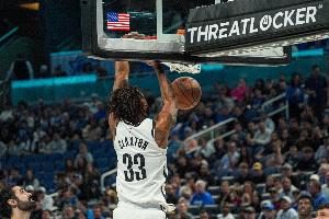 籃網(wǎng)中鋒克拉克斯頓上半場(chǎng)效率不俗但罰球很鐵,他打了16分半鐘,8投5中、罰球5中2,得到12分9籃板4助攻,正負(fù)值高達(dá)+20!