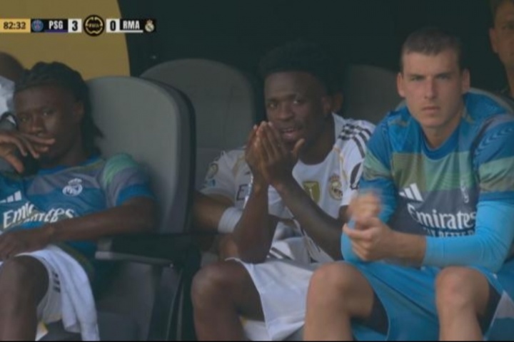 體育資訊07月10日訊 世俱杯半決賽,皇馬0-4負(fù)于巴黎圣日耳曼,維尼修斯因被拍到在皇馬0-3落后時(shí)偷笑,受到了球迷的批評(píng)。