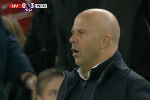 體育資訊11月23日訊 利物浦vs森林第78分鐘,利物浦再丟一球,比分變?yōu)?-3!轉(zhuǎn)播鏡頭馬上切給了斯洛特!