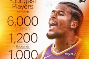 體育資訊7月11日訊 太陽官方曬出一張關(guān)于“拿到6000分+1200籃板+1000助攻最年輕的8位球員”數(shù)據(jù)圖,并配文寫到:“躋身頂級(jí)行列?!?/p>