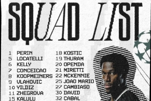 體育資訊11月24日訊 北京時(shí)間11月26日本周三凌晨4點(diǎn),歐冠聯(lián)賽階段第5輪,尤文客戰(zhàn)博德閃耀,尤文公布了此役大名單。