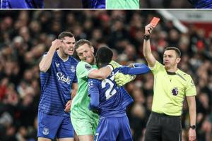 體育資訊11月25日訊 英超第12輪,埃弗頓1-0擊敗曼聯(lián),本場(chǎng)比賽蓋耶的紅牌創(chuàng)造名場(chǎng)面。