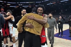 昔日好兄弟!賽后杰倫·格林&狄龍與火箭眾將敘舊擁抱&有說有笑