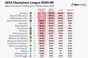 Opta歐冠奪冠概率(前10位):
