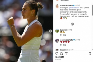 賽后,薩巴倫卡更新了社媒告別溫網(wǎng),她向組委會表示了感謝并期待明年再次參賽。