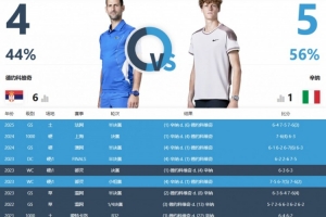 雙方最近一次交手為今年法網(wǎng)半決賽,德約科維奇0-3不敵辛納。此外,辛納已經(jīng)取得了兩人交手的4連勝。
