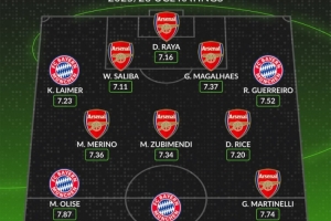 體育資訊11月27日訊 拜仁將在本輪歐冠客戰(zhàn)阿森納,whoscored也列出了兩隊本賽季歐冠評分合體最佳陣,阿森納7將在列。