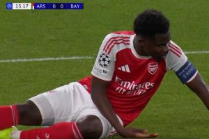 體育資訊11月27日訊 阿森納vs拜仁第16分鐘,諾伊爾出擊解圍,薩卡鼻子被撞出血,隊(duì)醫(yī)進(jìn)場處理!