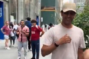 頭戴米色棒球帽、身著米色T恤的納賽爾,在決賽前三天的周四下午現(xiàn)身第五大道的巴黎圣日耳曼專賣店。巴黎與切爾西的世俱杯決戰(zhàn)將于周日在新澤西MetLife體育場舉行,此前參加歐洲俱樂部協(xié)會會議期間,納賽爾已用同樣方式造訪過洛杉磯和邁阿密門店。此行他不僅檢查了新球衣到貨情況,更與球迷親切互動。周四下午在紐約完成這些流程后,他當(dāng)場向多位球迷贈送了決賽門票。