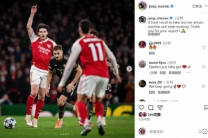 斯坦尼西奇社媒曬出比賽照片,配文:“這是一個(gè)難以接受的結(jié)果,但我們依然保持積極的態(tài)度,繼續(xù)努力。感謝大家的支持。”