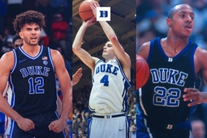 這是他賽季前8場(chǎng)比賽中,第二次砍下單場(chǎng)35分。自1985-86賽季NCAA引入投籃時(shí)間限制以來(lái),杜克大學(xué)歷史上只有三位球員做到過(guò)單賽季多次單場(chǎng)得分35+。另外兩位是雷迪克(兩個(gè)賽季做到,05-06賽季更是單賽季7次、其中包括3場(chǎng)40+)、杰伊·威廉姆斯(注:圖中標(biāo)注賽季有誤,應(yīng)為01-02賽季)