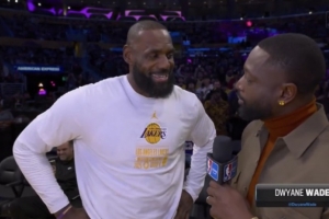 體育資訊11月29日訊 今日,湖人在NBA杯賽中129-119主場(chǎng)擊敗獨(dú)行俠。賽前,湖人前鋒詹姆斯接受了NBA名宿韋德的采訪。