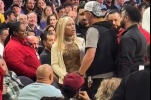 有球迷曬出視頻,昨日比賽中,有一位坐在湖人板凳席旁邊的女球迷疑似在不斷騷擾湖人球員,被多名保安強(qiáng)制請(qǐng)出場(chǎng)外。