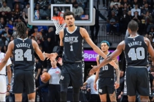 就像納什庫(kù)里約基奇讓隊(duì)友們顯得好像更牛逼了一樣,文班也讓其他人顯得“沒(méi)那么差”。但在他休戰(zhàn)的比賽里,馬刺殘陣確實(shí)沒(méi)那么差——??怂棺罱鶊?chǎng)場(chǎng)均27分8助攻,命中率48%;瓦塞爾近六場(chǎng)場(chǎng)均19分,三分準(zhǔn)心高達(dá)53%。就算面對(duì)約穆帶隊(duì)的掘金,馬刺也沒(méi)有被打崩,甚至在落后兩位數(shù)的情況下完成逆轉(zhuǎn)。