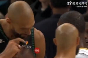 賽后發(fā)生有趣一幕,戈貝爾指著自己的腦門(mén),對(duì)杰倫·布朗面授機(jī)宜,大致意思是別整發(fā)際線(xiàn)粉了,像我這樣多好。有趣的是,在這過(guò)程中另一個(gè)大光頭德里克·懷特從他倆身前走過(guò)。
