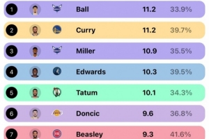 5人單賽季場(chǎng)均出手10+三分,聯(lián)盟歷史首次