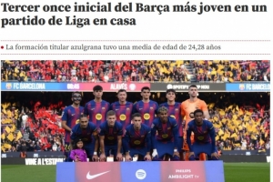 體育資訊11月30日訊 《世界體育報(bào)》報(bào)道,在巴薩3比1戰(zhàn)勝阿拉維斯的比賽中,巴薩主帥弗里克派出的首發(fā)陣容平均年齡為24.28歲。據(jù)統(tǒng)計(jì),這是巴薩在諾坎普球場(chǎng)進(jìn)行的西甲聯(lián)賽中,隊(duì)史第三年輕的首發(fā)陣容。